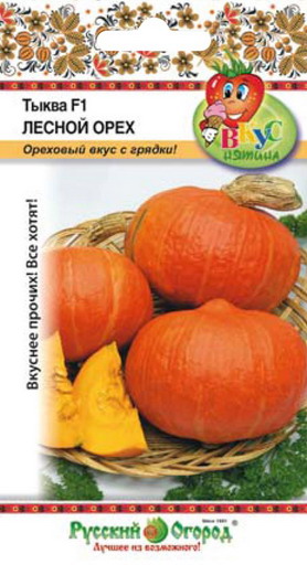Чтобы отведать орехов, теперь не надо далеко ходить! Не в лесу, а на грядке вырастает лакомство с ореховым вкусом! Красивые оранжево-красные тыквы массой 1-1,5 кг с оранжевой, плотной, крахмалистой мякотью, вкусны в любом виде! Сорт раннеспелый, созревает за 95 дней. Хорошо хранится.
